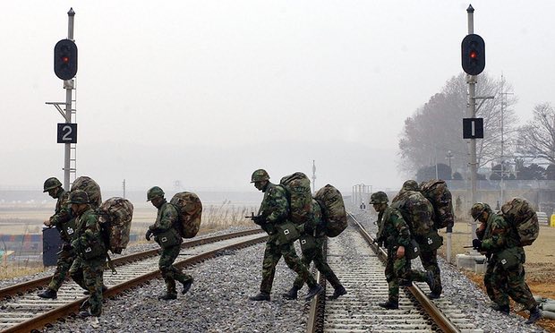 Trong số 130.000 lính Hàn Quốc nhập ngũ mỗi năm, chỉ có một số ít tận mắt nh́n thấy binh lính Triều Tiên. Đó là những người đóng quân tại vùng biên giới "khu phi quân sự" phân cách hai miền bán đảo Triều Tiên.