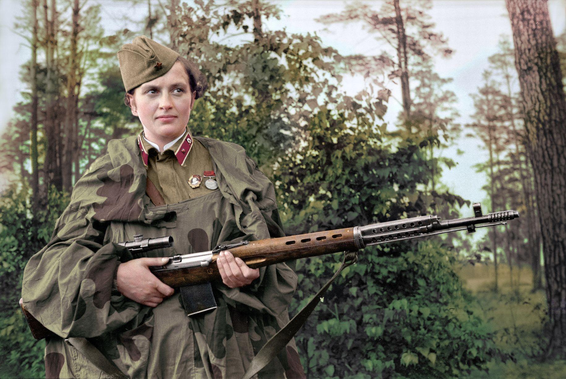 Khoảng 800.000 phụ nữ đã phục vụ trong Lực lượng Vũ trang Liên Xô thời đó với các nhiệm vụ như lính bắn tỉa, phi công, người bắn súng máy và rất nhiều người làm việc trong các đơn vị chăm sóc y tế.