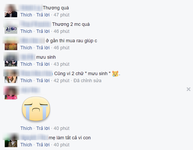 Chỉ sau vài giờ đăng tải, bức ảnh thu hút hàng ngàn người quan tâm, bình luận, chia sẻ trên mạng xã hội và thậm chí, phía sau màn hình điện thoại cũng có những giọt nước mắt đã rơi, của những người vì thấy cảm thương, vì thấy đâu đó trong tấm ảnh kia có hình bóng của mình và mẹ, ở những năm rất xa về trước, cùng nhau giữa cuộc mưu sinh.