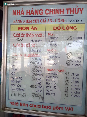 Ngoài ra, mức giá này chúng tôi cũng niêm yết công khai trên bảng, khách đồng ư với giá th́ gọi, sử dụng chứ không phải giấu giếm ǵ", vị đại diện nhà hàng nêu rơ.