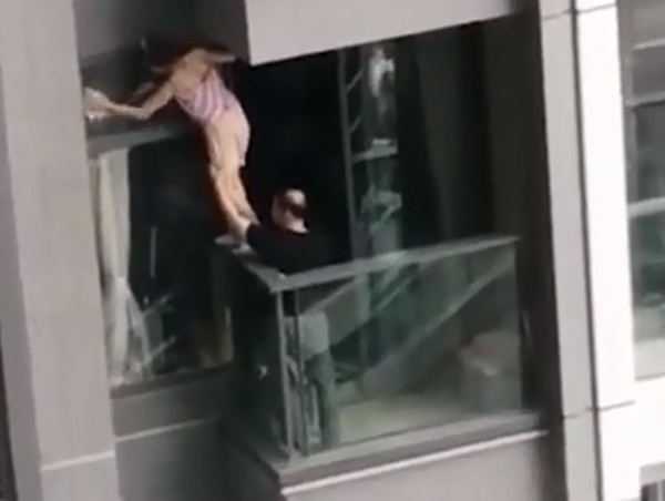 Vietbf.com - Lau cửa kính theo cách liều mạng của cặp vợ chồng trẻ, và bất chấp sự an nguy đến tính mạng khiến người khác thấp thỏm, vì người vợ hết đứng rồi lại ngồi vắt vẻo trên thanh chắn lan can, thậm chí còn nhoài hẳn ra khỏi ban công để cố gắng làm sạch, trong khi chồng chỉ bám hờ tay vào bắp chân của vợ của để tạo cảm giác an toàn.
