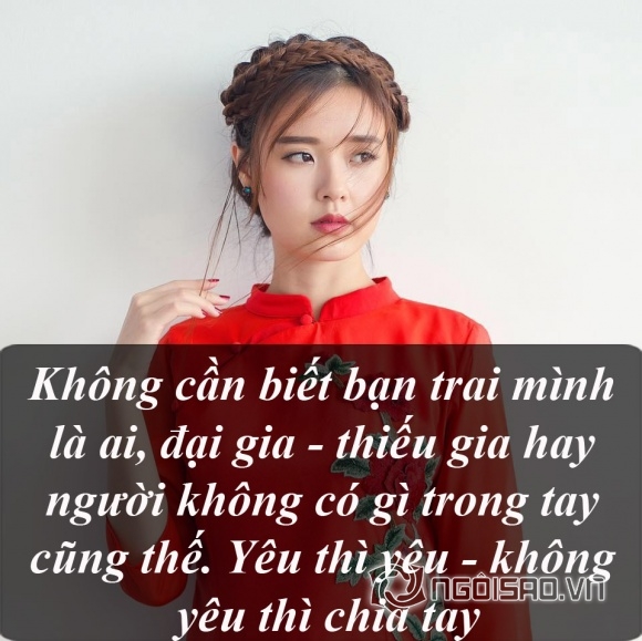 Ngày 9/5, Midu bất ngờ chia sẻ trên trang cá nhân quan điểm về t́nh yêu khá hiện đại của ḿnh. Theo đó, người đẹp cho rằng dù bạn trai có là đại gia, thiếu gia hay người không có ǵ trong tay th́ cũng không có ǵ khác nhau, khi đă hết yêu th́ chia tay là chuyện b́nh thường.
