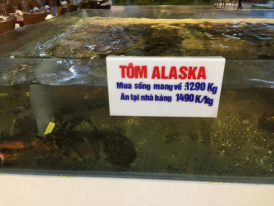 Không chỉ có cua hoàng đế, loại tôm hùm xuất xứ Alaska (Mỹ) tươi sống cũng có giá cao ngất ngưởng 2,9 triệu đồng/kg, gấp đôi loại tôm hùm đắt nhất tại Việt Nam. Còn loại nhỏ hơn như tôm hùm bông, tôm hùm mũ ni, có giá gần 1,3 triệu đồng/kg (mức giá này tương đương hoặc đắt hơn đôi chút so với tôm hùm đánh bắt và nuôi trong nước).