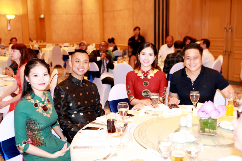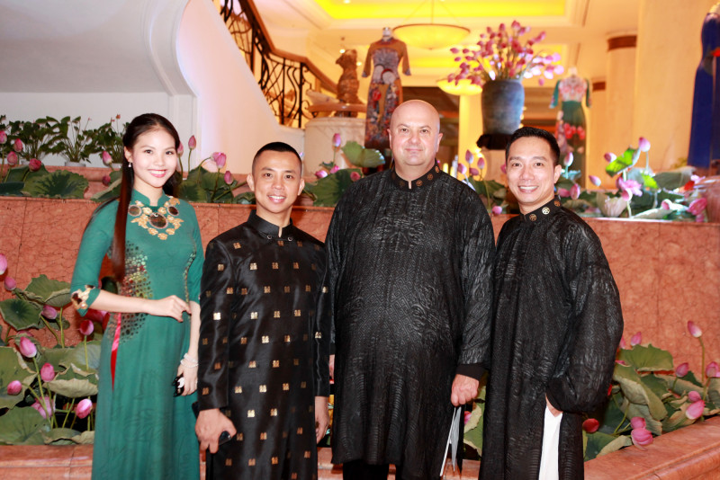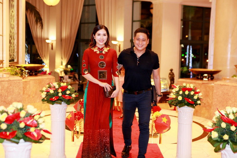 Chí Anh mặc áo dài dát vàng cùng vợ trẻ lần đầu xuất hiện trước công chúng