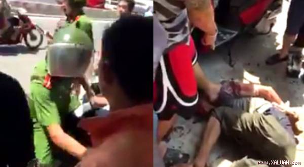 Kẻ đâm 4 người bị đánh bê bết máu.