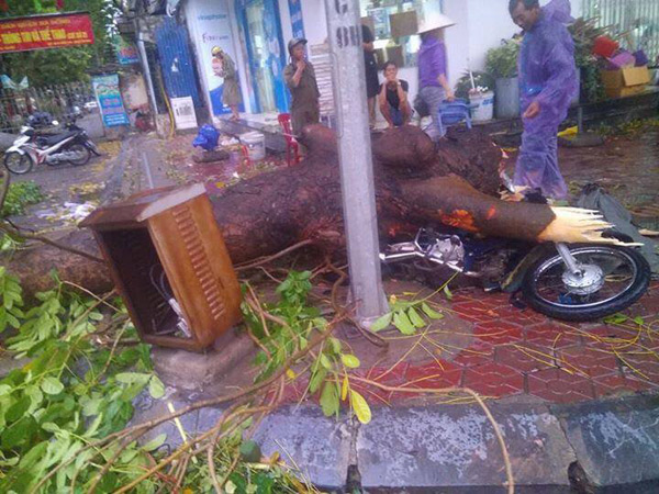 Hà Nội đã có cơn mưa giông rất lớn. Nhiều cây lớn đã bị mưa giông làm gãy đổ. Đã có 2 người bị cành cây đè lên người.