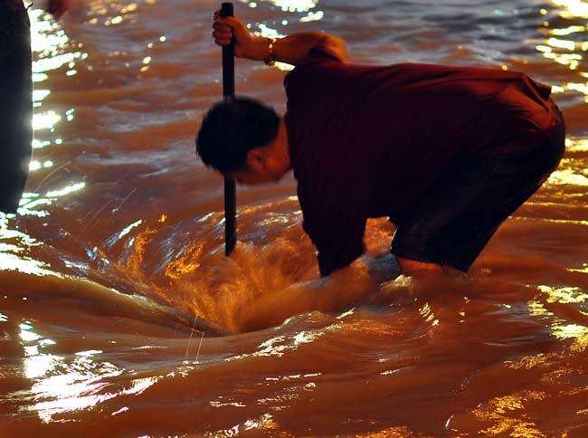 Ngồi trên miệng cống thoát nước để móc rác, sau cơn mưa chiều 30.5 vừa qua, anh Trần Văn Hải, ngụ đường Huỳnh Tấn Phát, con đường huyết mạch nối Q.7 và Nhà Bè, không khỏi bức xúc. Theo anh Hải, hễ mưa xuống là con đường này ngập. Chuyện đường thấp, hệ thống thoát nước không đủ tải khi mưa lớn gây ngập là chuyện ai cũng biết. Thế nhưng, ít ai biết nguyên nhân khiến con đường này vừa ngập nặng và ngập lâu sau cơn mưa lại có phần đóng góp không nhỏ từ phía nhiều người dân. “Hàng loạt bịch rác lớn từ những hộ dân sống ven đường thi nhau trôi về hướng miệng cống, cùng với rác “đi lạc” trên đường đổ về miệng cống thoát nước thì nước rút đường nào”, anh Hải bức xúc.