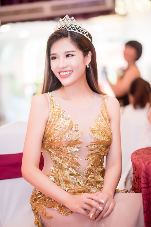 Tham dự sự kiện lần này, Hoa hậu Phan Hoàng Thu lựa chọn 1 chiếc đầm dạ hội khá độc đáo của NTK Audrey Hiếu Nguyễn.