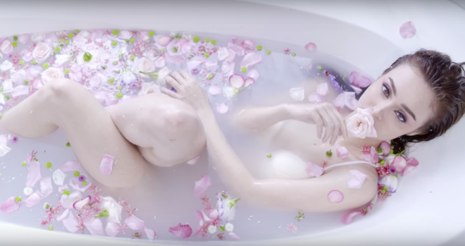 Run người ngắm vẻ đẹp h́nh thể của nữ ca sĩ lai Pháp trong bồn tắm