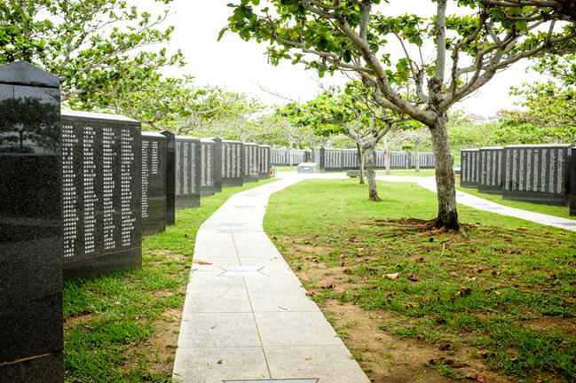 Đài tưởng niệm Hòa bình ở Công viên Hòa bình Quận Okinawa có tên của 149.193 người gốc Okinawa, khoảng một phần tư dân số đảo, đã bị giết hoặc tự sát trong Trận Okinawa và Chiến tranh Thái Bình Dương.
