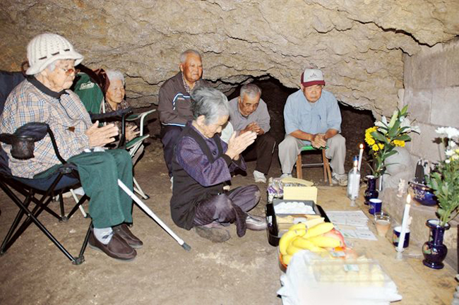 Vào cuối cuộc chiến, binh lính Nhật nhận được chỉ thị phải tự sát để giữ mình trong sạch, giữ trung thành với Tổ quốc chứ không được phép đầu hàng quân đội Hoa Kỳ. Nhiều người dân cũng tự sát vì cùng lý do đó. Những người lính và dân thường quyết định tự kết liễu mạng sống của họ trong các hang động khác nhau trên khắp quần đảo Okinawa.