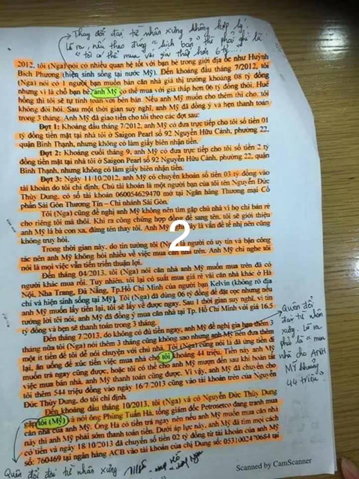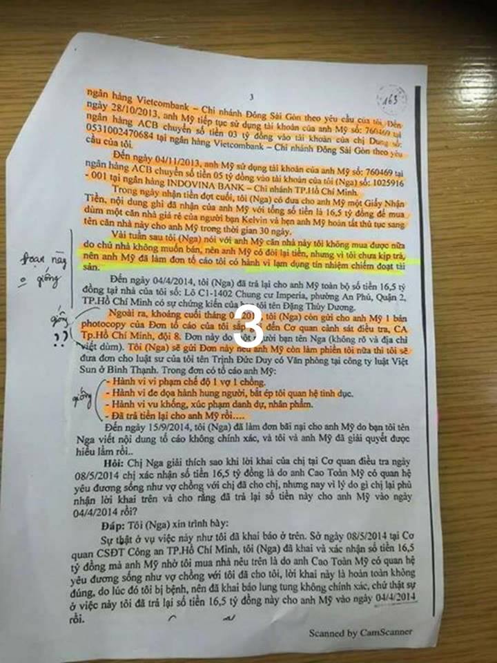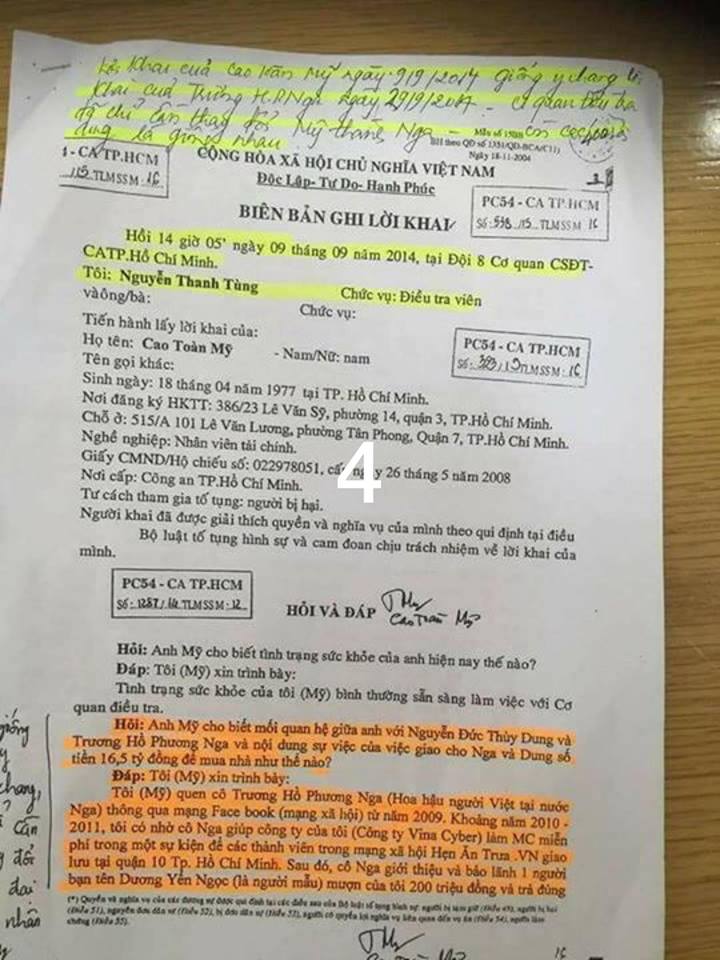 Sau một thời gian,toà án tiếp tục xét xử vụ án hoa hậu Trương Hồ Phương Nga và Nguyễn Đức Thùy Dung về tội Lừa đảo chiếm đoạt tài sản. Nguyên đơn là ông Cao Toàn Mỹ, cổ đông sáng lập VNG – VinaGame .Trong phiên xét xử tại toà,hoa hậu Phương Nga bất ngờ nói ra những tình tiết mới khiến Nga mất lòng tin và tiếp tục quyền giữ im lặng.Mới đây trên mạng đang lan truyền bản chụp biên bản ghi lời khai của Cao Toàn Mỹ và Trương Hồ Phương Nga.