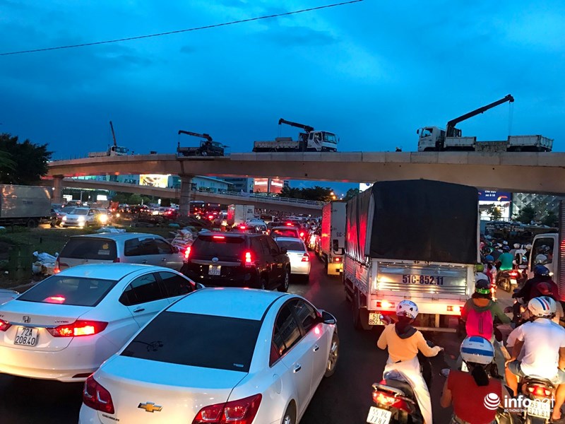 Trước đó, từ 17h30’ chiều qua, lượng xe ken đặc tại các nút giao thông đường Trường Sơn, Hồng Hà, trước cổng sân bay Tân Sơn Nhất. Từ các vị trí ùn tắc cục bộ này kéo theo lượng xe ùn ừ kéo dài trên các tuyến đường Trường Sơn, Hồng Hà.