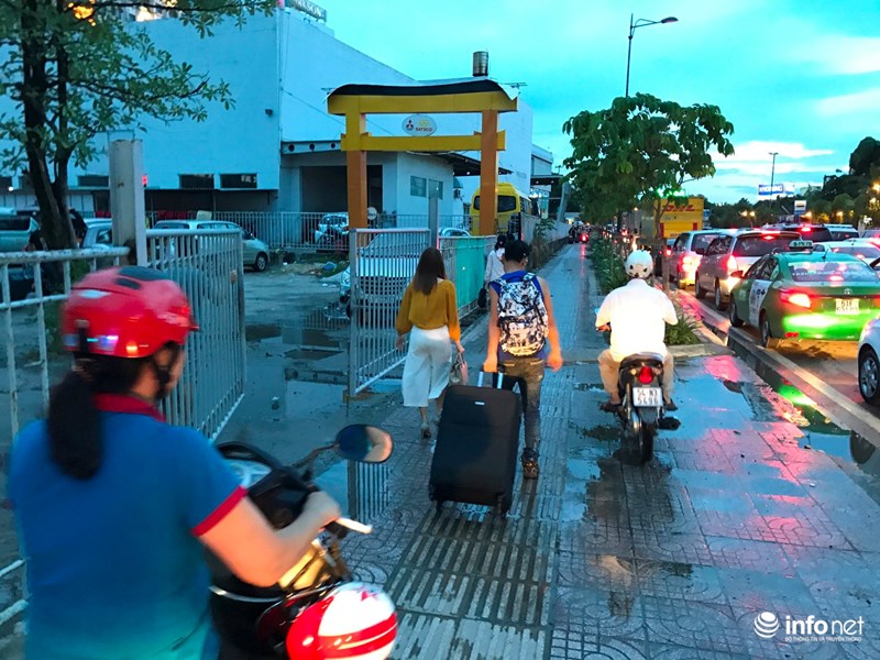 Kẹt xe khiến hành khách phải xuống taxi và đi bộ vào sân bay cho kịp giờ