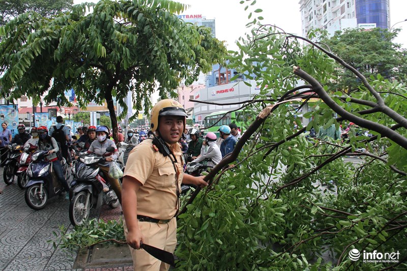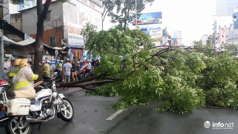 *Trong một diễn biến khác, trong cơn mưa chiều cùng ngày (23/6), một nhánh cây xà cừ trước số 125 Cách Mạng Tháng Tám (phường Bến Thành, quận 1, TP.HCM) bất ngờ bị găy rơi xuống, trúng vào ô tô.