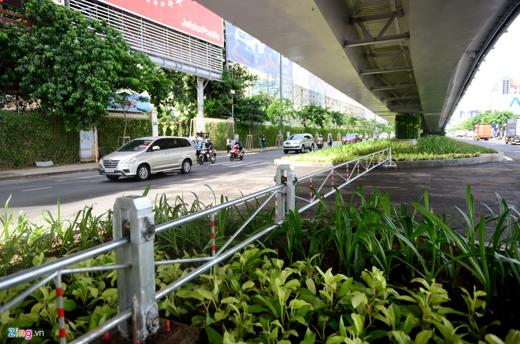 Nhánh cầu số 2 hướng ngược lại phần đường Hoàng Minh Giám đã hoàn thành nhưng xe cộ vẫn phải lưu thông phía dưới do nhánh còn lại trên đường Nguyễn Kiệm chưa được thi công.