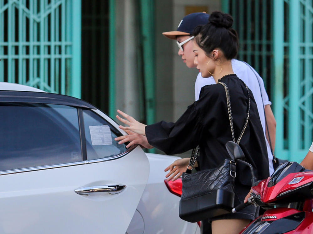 Sau khi gặp một người bạn, cả hai cùng lên xe và di chuyển đến quán ăn. Suốt buổi, "người đẹp vạn người mê" cười nói liên tục, không hề tỏ ra buồn bã.