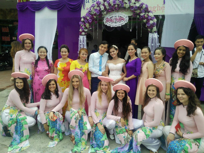 Loạt ảnh những cô gái, chàng trai ngoại quốc trong trang phục áo dài truyền thống khiến dân mạng thích thú.