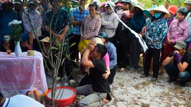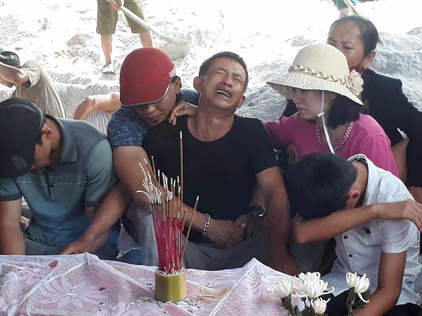 Giữa cồn cát mênh mông chỉ có những tiếng khóc xé lòng, trước quan tài con trai, anh Ất cứ quỳ lên lại ngã xuống rồi liên tục gọi tên con: “Sao lại khổ thế này con ơi, ba có làm gì nên tội với ai đâu mà giờ đầu bạc tiễn đầu xanh thế này. Con còn nhỏ quá, con có tội tình gì đâu…”.