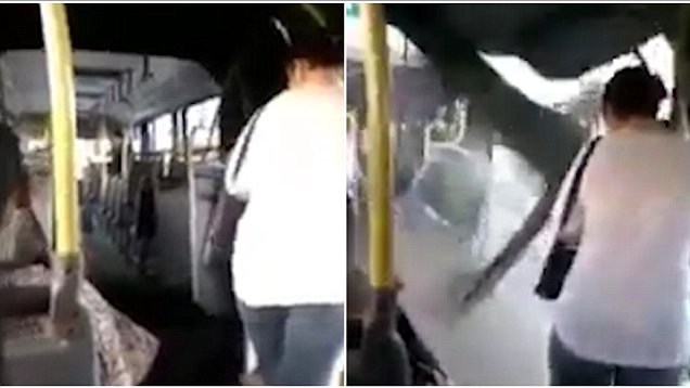 Video được quay trong xe buýt nối toa – kiểu xe phổ biến ở Brazil gồm 2 toa được nối bằng khớp quay.