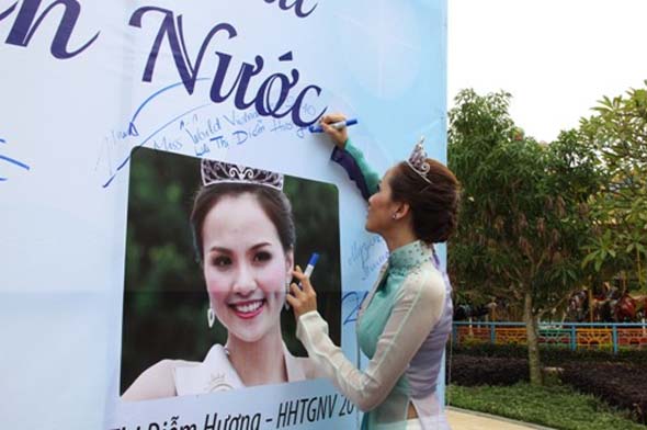 Tham gia cuộc thi lại là người đăng quang, Diễm Hương không thể viết sai danh hiệu của chính mình, bởi cụm từ này được in trên tờ rơi, băng-rôn, áo đồng phục và nhắc đi nhắc lại trên các phương tiện truyền thông trong suốt cả năm trời. Điều này đã khiến cho khán giả lo lắng về đại diện nước chủ nhà trong cuộc thi Hoa hậu Trái đất thời gian sau đó.