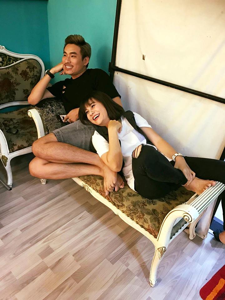 Mặc chiếc quần sóc khá ngắn nên với kiểu tạo dáng thế này, vòng 3 của Angela Phương Trinh gần như hở trọn vẹn. Cô nàng còn rất vô tư cho biết cứ thấy máy ảnh lia tới là phải tạo dáng cho đẹp ngay bất kể đang làm gì.