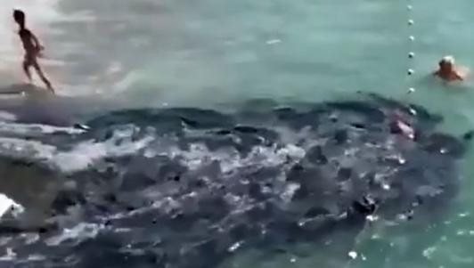 Trong đoạn video ghi lại tại hiện trường, một người phụ nữ đã hét lớn về phía những đứa trẻ đang tắm biển: “Lên bờ ngay, nhanh lên!”, trong khi một số du khách sợ hãi bỏ chạy khỏi dòng nước đen.