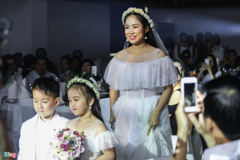 Bé Cà Pháo đứng bên mẹ trong giờ phút trọng đại. Cậu bé 5 tuổi được nhận xét cao lớn và có vẻ ngoài giống bố Quách Ngọc Ngoan. Trong ảnh là tân nương tân lang bên bố mẹ hai bên.