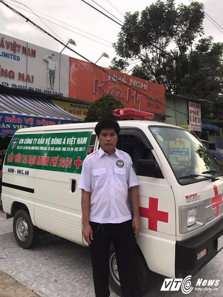 Người đàn ông đó là Trần Huy Thông (SN 1970, ngụ tổ 42, ấp 2, xã Long Thọ, huyện Nhơn Trạch, tỉnh Đồng Nai) - người tự bỏ tiền túi mua 2 chiếc ô tô và trang bị dụng cụ để cứu giúp những nạn nhân bị tai nạn giao thông trên đường hay những người gặp nạn nguy cấp.