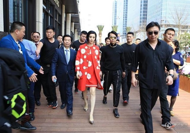 Là ngôi sao hạng A, Phạm Băng Băng luôn xuất hiện với dàn vệ sĩ hùng hậu mỗi khi đi dự sự kiện.
