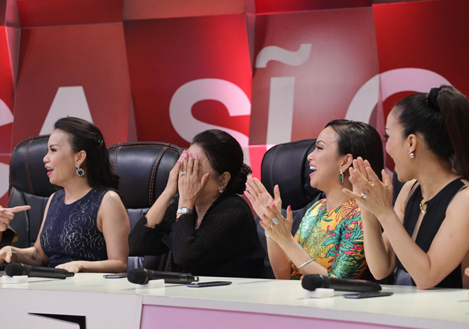Mẹ Minh Tuyết che mặt xấu hổ v́ 4 lần liên tiếp không nhận ra giọng hát con gái.