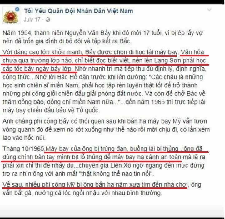 Tới hôm nay qua FB anh Trần Hải mới may mắn lượm được cái status này của trang Quân đội nhân dân của đảng CSVN nói về phi công miền Bắc .