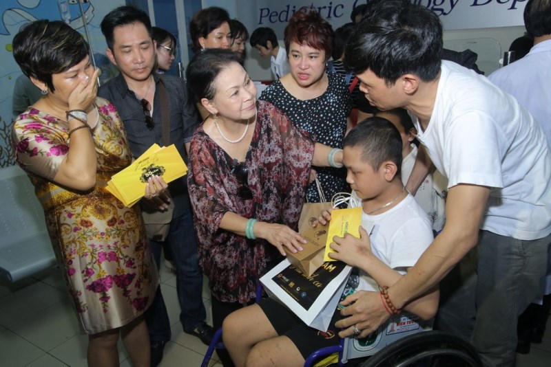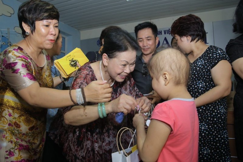 Danh ca Khánh Ly tận tay trao quà cho các bệnh nhi đang điều trị tại bệnh viện.