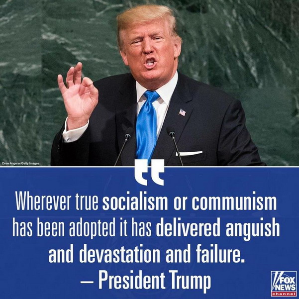2.""Từ Liên bang Soviet cho tới Cuba hay Venezuela, Bất cứ nơi nào Chủ nghĩa Xã hội hay Chủ nghĩa Cộng sản đúng nghĩa từng được thực thi, nó đều mang đến nỗi thống khổ, sự tàn phá và thất bại."" Mắt bạn không hề nhìn nhầm, Tổng thống Donald Trump đã thật sự nói như vậy trong bài diễn văn hôm 19-9 vừa qua tại Đại Hội đồng Liên Hiệp Quốc. Tất nhiên, không một tờ báo nào ở Việt Nam dám dẫn lại câu nói này, thế là họ lái sang chuyện khác khi rêu rao lên rằng bài phát biểu của ông Trump "đầy đe dọa" và "bị đa số quốc gia phản đối".