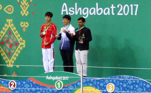 Quan Liêm (giữa) trong lễ trao huy chương. Ảnh: Doãn Bình.