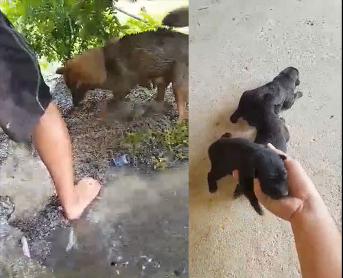 Nhờ sự nỗ lực cố gắng cứu con nên 3 chú chó con đã thoát nạn.