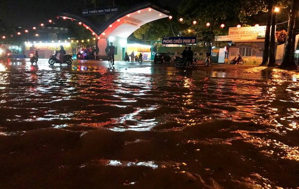 Tối 28/9, nhiều khu vực ở phía Đông TP.HCM có mưa rất lớn. Cơn mưa như trút nước khiến hàng loạt tuyến đường trên địa bàn các quận 2, 9, Thủ Đức...ngập sâu trong biển nước mênh mông.