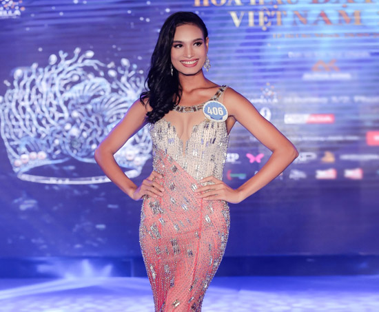Trong đêm thi vòng bán kết của Hoa hậu Đại dương 2017 diễn ra tại TP HCM, Cẩm Tú - con gái của diễn viên Kiều Trinh phim 'Bi, đừng sợ' tự tin khoe dáng ở phần thi trang phục dạ hội. Cô là gương mặt quen thuộc với khán giả qua nhiều bộ phim truyền hình và điện ảnh, trong đó có 'Dịu dàng' đóng cùng Dustin Nguyễn, 'Bạn ma', 'Tiệc trăng tròn'... bán kết của Hoa hậu Đại dương 2017 diễn ra tại TP HCM.