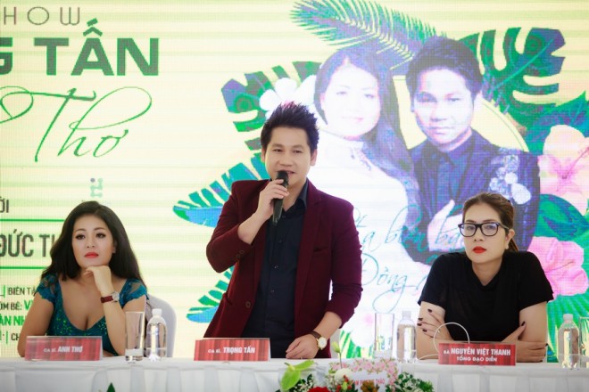 Nam ca sĩ Trọng Tấn phát biểu trong buổi họp báo.