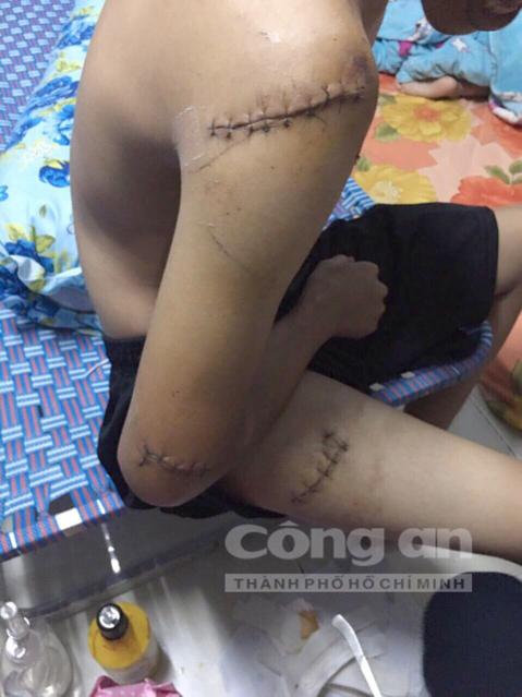 Anh V. bị chém nhiều nhát trên người. Ảnh CATP