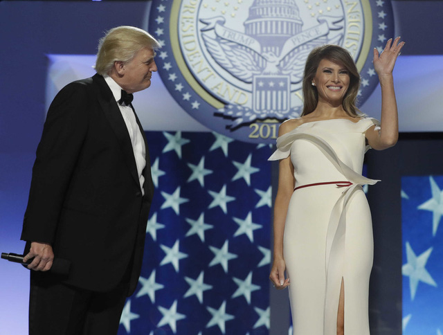 Bà Melania đầy kiêu sa và quyến rũ trong đầm trắng của hãng Herve Pierre tại tiệc khiêu vũ mừng lễ nhậm chức của chồng.