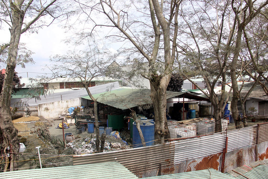 Nhìn vào bên trong, công ty này được xây dựng rất đơn giản với mái tôn. Tường rào cũng được dựng bằng các miếng tôn sắt và dây thép gai.