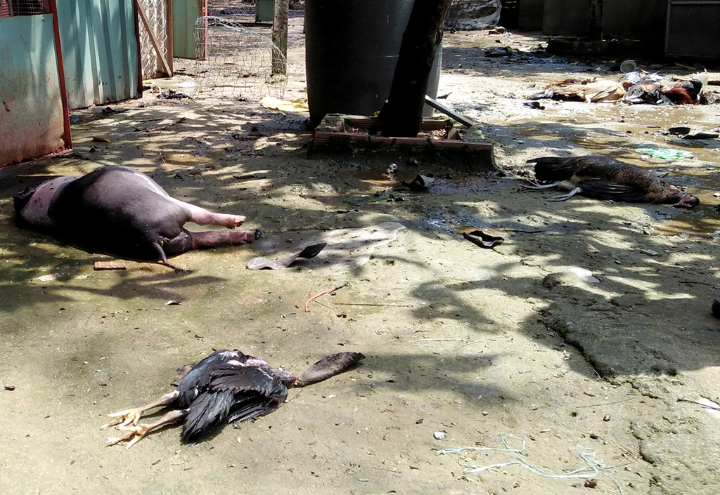 Heo, gà, vịt chết nằm la liệt.