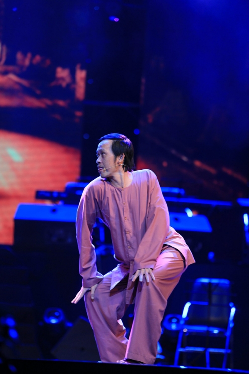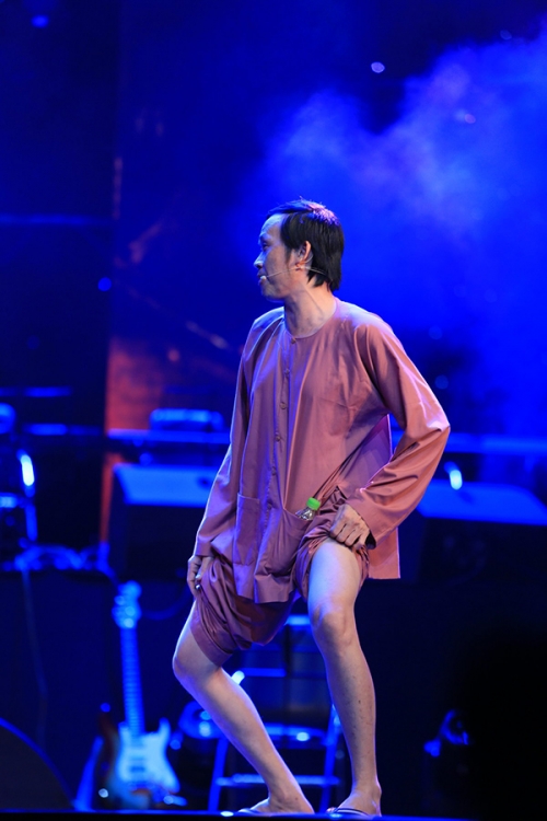 Hoài Linh cũng kéo cao quần khoe đôi chân thon