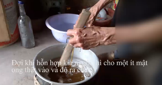 Các công đoạn làm mật ong giả được thực hiện bởi bà cụ 30 năm kinh nghiệm ở xã Lê Thanh, Mỹ Đức, Hà Nội.