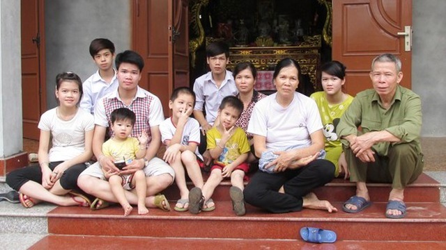 Ông Phan Văn Hiển, 69 tuổi, và bà Tạ Thị Nguyệt chụp hình chung với bảy đứa con chưa lập gia đình và một số cháu nội ngoại, trong hình chụp năm 2015. Họ sống tại Hà Nội, có tổng cộng 14 người con gồm sáu trai và tám gái. (Quỳnh Nguyên/ Gia Đình Và Xã Hội)