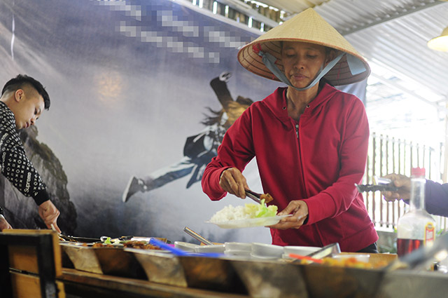 Chị Nguyễn Thị Lộc (quê Đan Phượng, Hà Nội) làm nghề bán hoa quả ở chợ Mỹ Đình cho biết, sáng sớm tinh mơ chị đã chở hoa đi bán, tối mịt mới về, bữa trưa chỉ ăn qua loa chiếc bánh mì cho qua bữa. Từ khi biết quán cơm phục vụ với giá rẻ - chỉ 1.000 đồng, trưa thứ Hai hàng tuần, chị đều đặn ghé qua ăn.