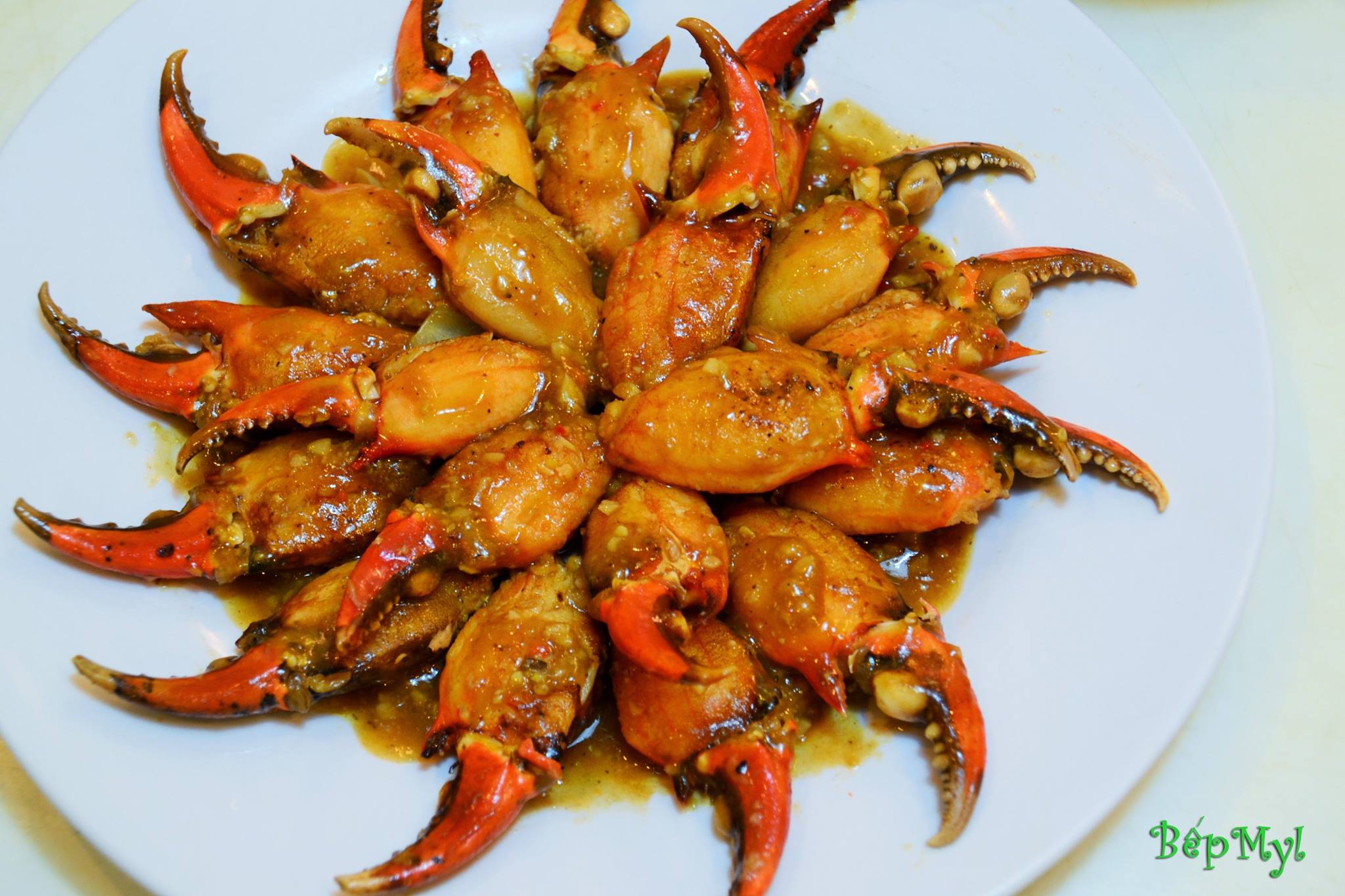 Chiên càng cua vàng hai mặt, vớt ra để ráo dầu. Tiếp tục phi thơm tỏi và hành tây, cho càng cua, ớt và sốt me vào đun lửa nhỏ, từ từ cho cua thấm sốt, nêm gia vị vừa ăn. Sau cùng cho nước bột năng vào, sốt sánh lại các bạn tắt bếp.
