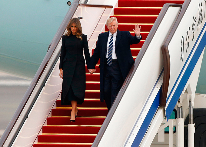 Ngày hôm sau, vợ chồng Tổng thống Mỹ lên đường sang Hàn Quốc, điểm dừng chân thứ hai trong chuyến công du châu Á - Thái Bình Dương của ông Trump.