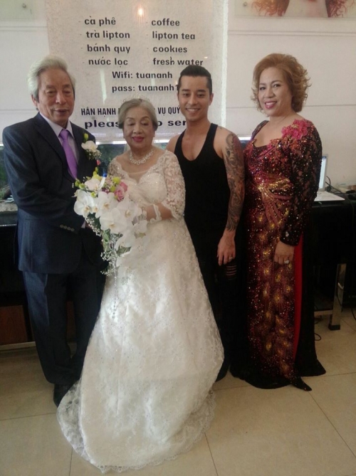 Cặp đôi "ông bà anh" ở Hải Phòng đã ngoài 80. Nhưng họ vẫn diện đồ cưới và tổ chức đám cưới càng. Ông mặc vest, bà mặc váy cô dâu và làm tóc cầu kỳ như bao cặp đôi trẻ.